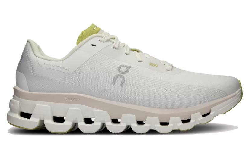 Der On Cloudflow 4 in Weiß/Sand ist ein stylischer und leistungsstarker Laufschuh für Damen. Sein atmungsaktives Mesh-Obermaterial hält die Füße kühl, während die CloudTec®-Dämpfung außergewöhnlichen Komfort und Halt bietet. Die leichte und dennoch robuste Konstruktion mit Speedboard™ für ein geschmeidiges Laufgefühl macht ihn perfekt für Straßenläufe und diverse Fitnessaktivitäten.