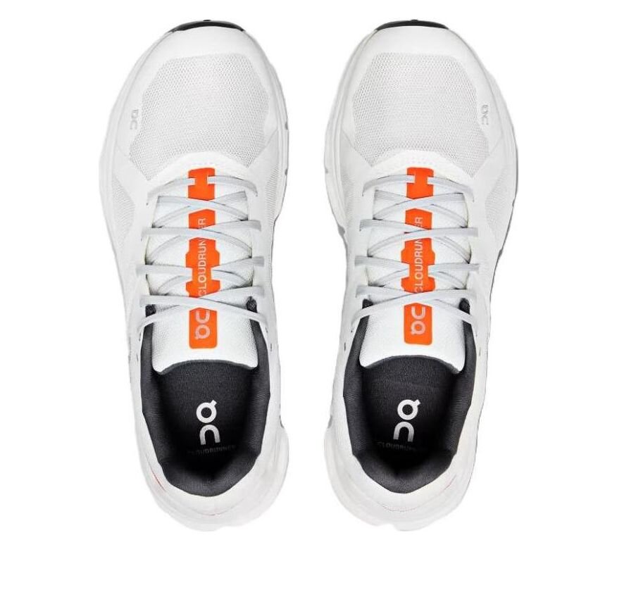 Modell: 46.98199 | Anlass: Laufen | Farbe: Weiß/Orange | Erscheinungsdatum: 23.10.2024 | Serie: Cloudrunner | Spitzname: Ungefärbte Weiße Flamme