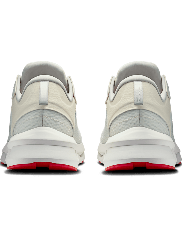 Die Schweizer Flagge befindet sich an der Ferse, während sichtbare Verstärkungen unter den Unterlagen und Ziernähte am Vorderfuß von Archiv-Laufschuhen inspiriert sind. Modelle.