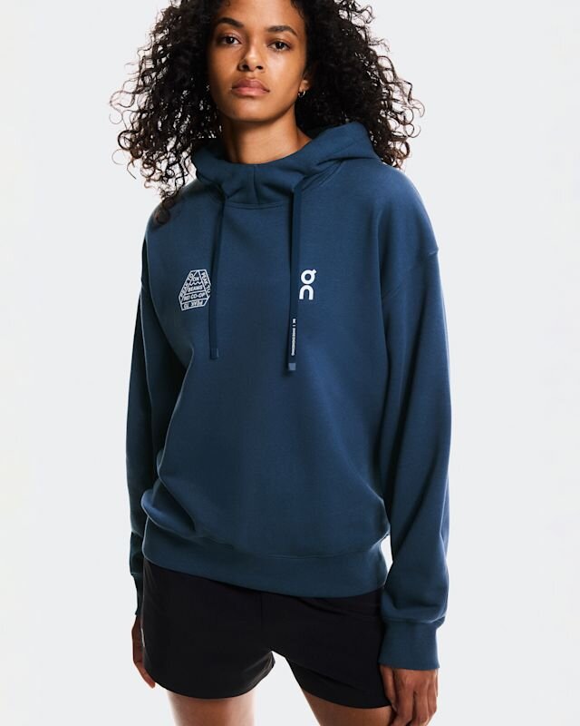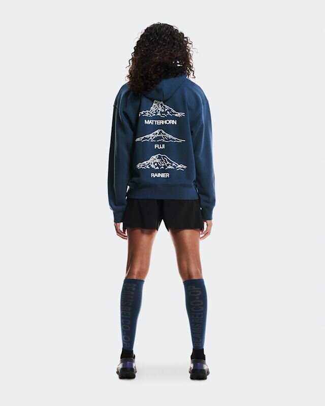 Ein weicher Baumwollhoodie mit drei Berggipfelmotiven. Entworfen in Zusammenarbeit mit BEAMS und REI Co-op.