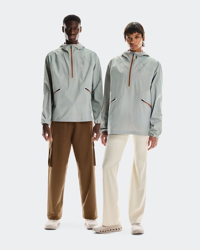 Hergestellt von Dieser Anorak, entworfen in Zusammenarbeit mit dem Luxusmodehaus LOEWE, vereint Mode und Funktionalität. Schweizer Ingenieurskunst trifft auf handwerkliches Können und sorgt für einen ausdrucksstarken Look. Hochwertige Details: Vom Saum bis zur Kapuze ist dieser Anorak mit praktischen Details ausgestattet. Die verstärkte Kapuzenkrempe bietet optimalen Schutz, und die verstellbaren Kordelzüge an Saum und Kapuze halten Regen zuverlässig ab. LOEWE × On Logos verleihen ihm einen exklusiven Touch.
